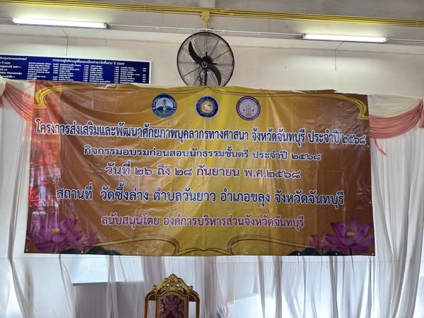วันศุกร์ที่ 26 กันยายน 2568 เข้าโครงการส่งเสริมและพัฒนาศักยภาพบุคลากรทางศาสนา จังหวัดจันทบุรี